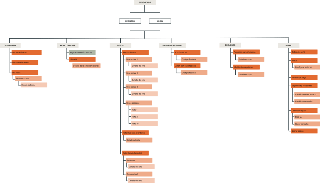 Desde la investigación y la ideación hasta la interfaz de usuario y la implementación, diseñamos Serenidapp con el objetivo de ofrecer un enfoque integral y digital que brinde apoyo y recursos para mejorar la salud mental de la población en general, pero en especial la de las personas más jóvenes.