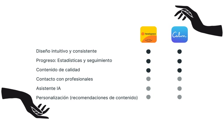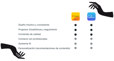 Para poder ofrecer la mejor solución decidimos hacer un benchmarking y así poder ver qué soluciones existían en el mercado para identificar áreas de mejora, establecer metas realistas y tomar decisiones que permitan optimizar los resultados. Tras examinar los productos existentes en el mercado y gracias al conocimiento obtenido en la fase de entrevistas, llegamos a la conclusión de que nuestro valor diferencial sería la personalización de los contenidos.
