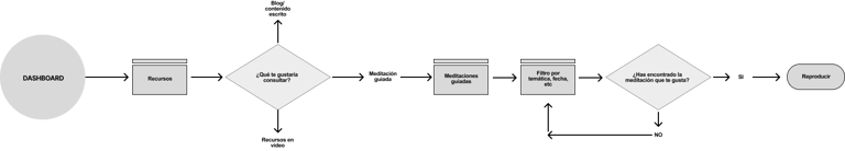 En relación con los objetivos arquitectónicos establecidos en el ejercicio "How Might We" identificamos las tareas y flujos de usuario que satisfarían las necesidades y puntos de dolor de nuestros usuarios a lo largo del "customer journey". A continuación, agrupamos estos flujos para crear el mapa de arquitectura de la información de nuestra aplicación.